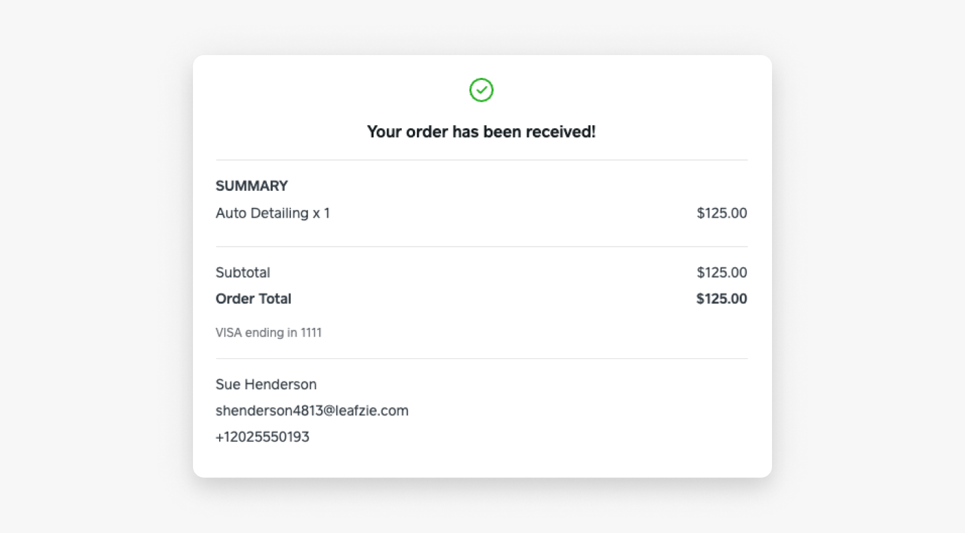 Displays the order confirmation page to the buyer. If you provided a redirect URL in the request, Square redirects the buyer to that page instead.