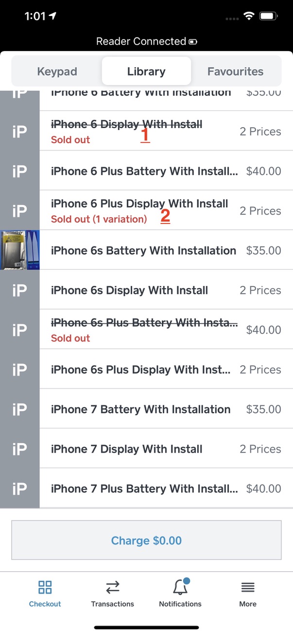 ON Marked 1: I know it is cross out and also mark out of stock, I wish that I would be able to click it anymore or if I can click it, a new screen that will show adding a stock to the inventory items.