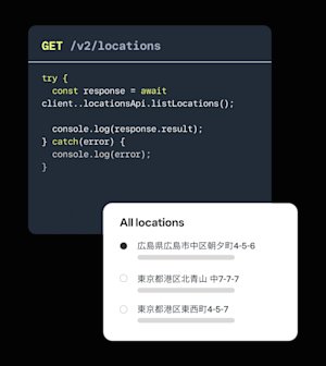 OAuth、Square SDK、GraphQL、モバイルでお試しいただけます。
